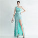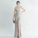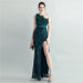 Heavy Industry Ostrich Hair Craft Bundle Hair Oblique Shoulder Side Slit High End Evening Dress