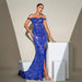 High Class Elegant Sleeveless off Neck Cocktail Sheath Sequined Split Evening