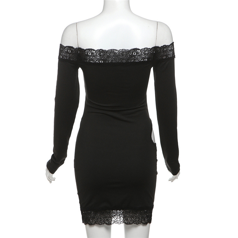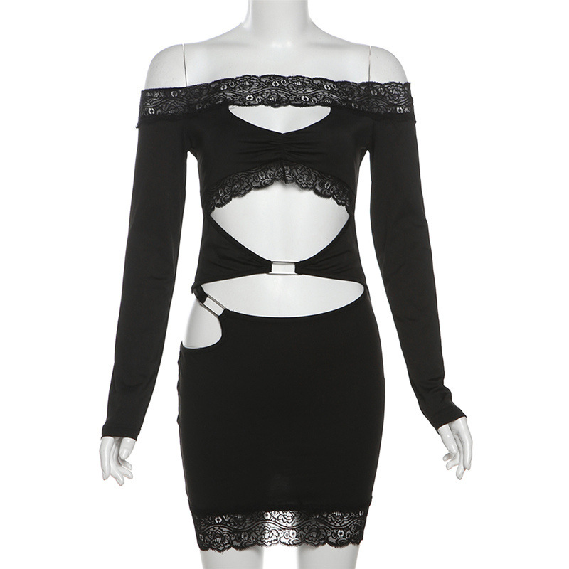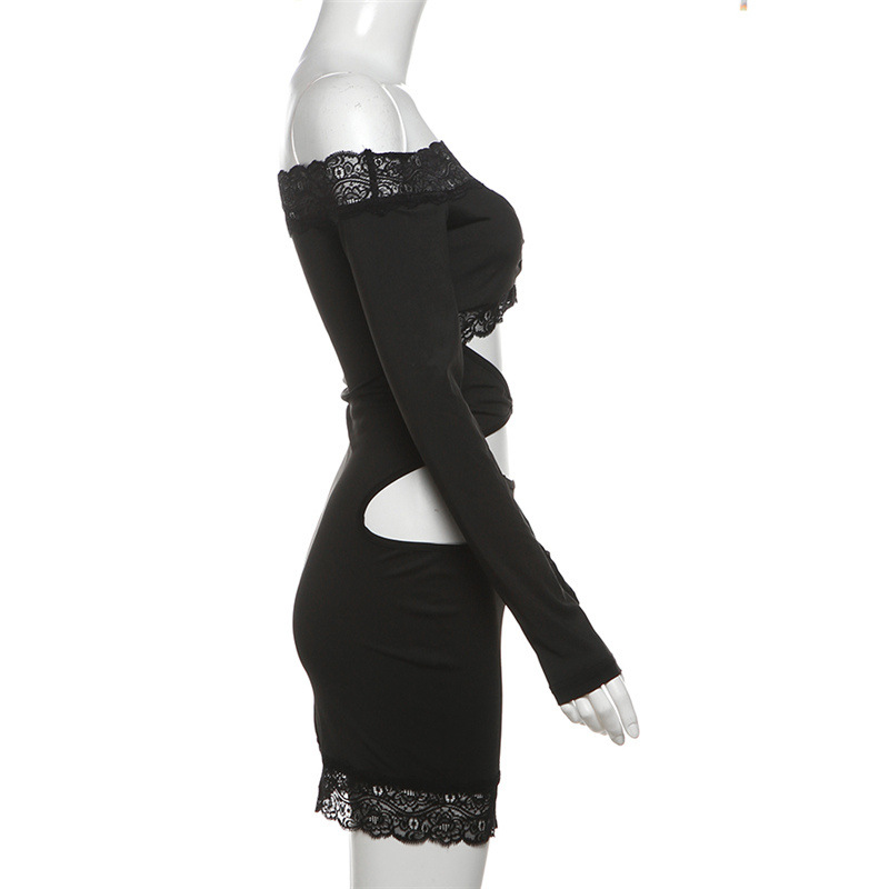 Hollow Out Cutout out Lace off Shoulder Long Sleeve