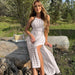 Hollow Out Knitted Top Lace Up Split Long Skirt Suit