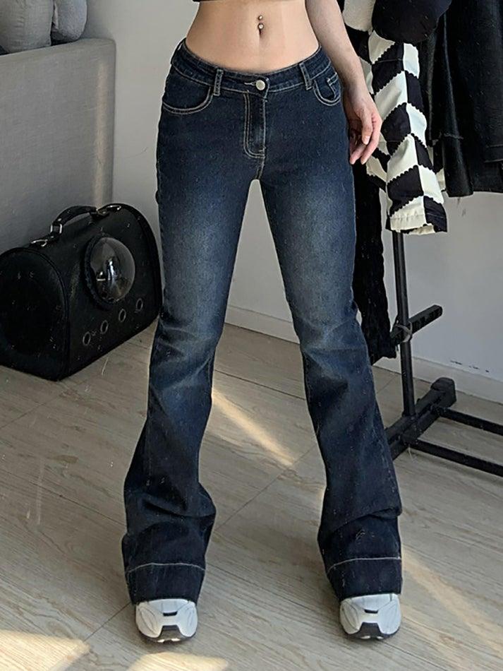 " Faded low-rise flared jeans from Amiemi is a fashion staple that never goes out of style. With its relaxed and comfortable cut. it suits all body shapes and goes perfectly with all clothing styles. Whether you're looking for a casual or more formal look. these jeans are the piece to have in your wardrobe. Our jeans are made from high-quality denim. for a timeless and durable look.