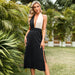 Lace-up Halterneck Backless Contrast-Color Cinched Sleeveless Dress