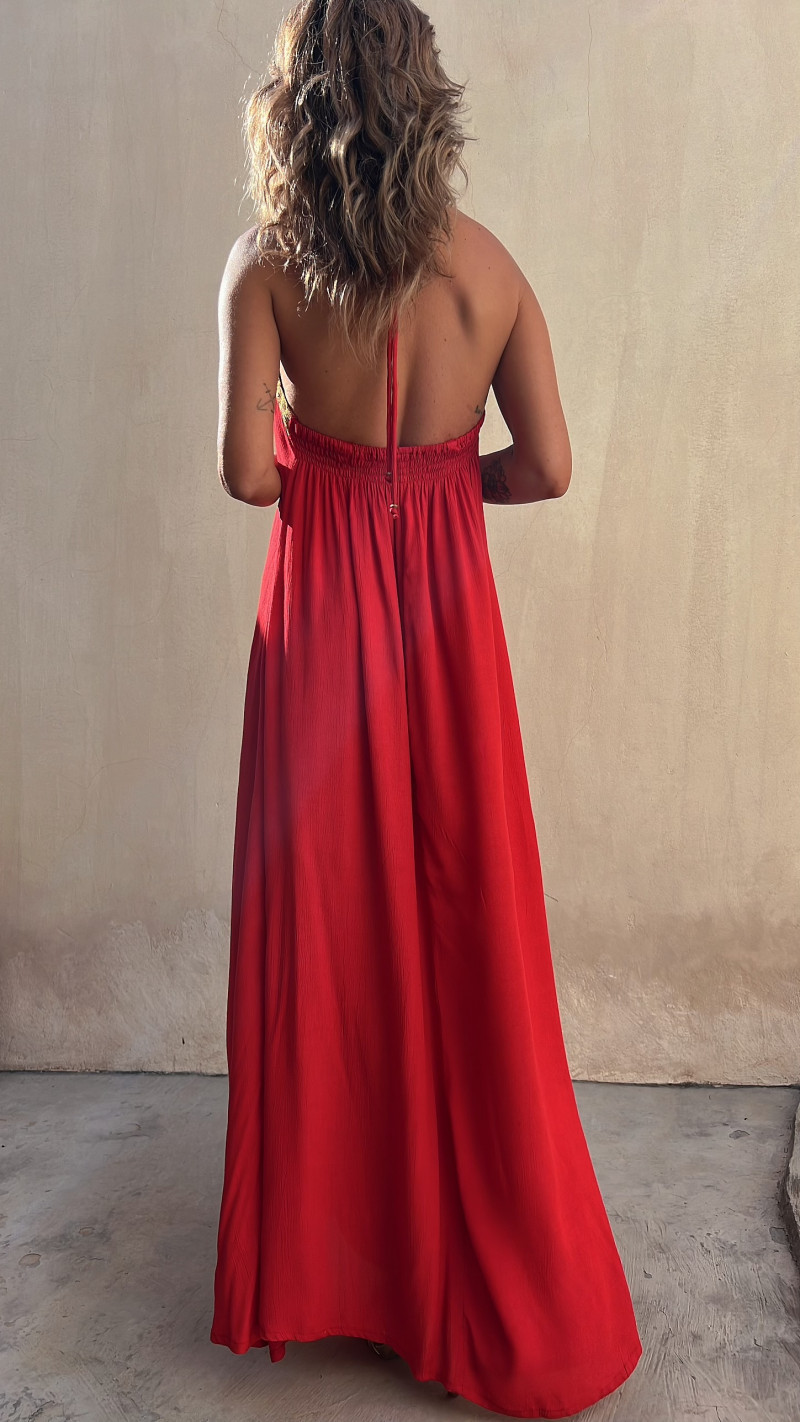 Lace up Halterneck Dress Casual Loose Vacation Large Swing Dress