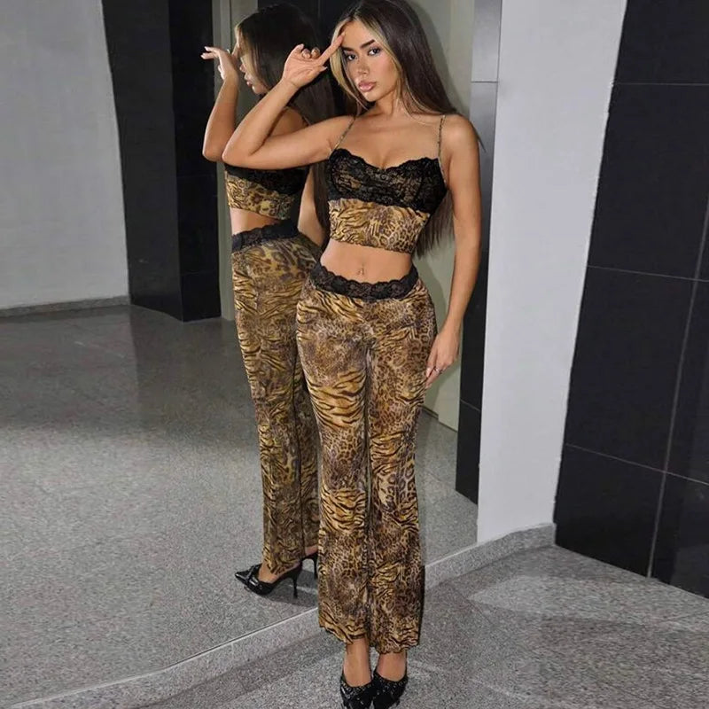 Leopard Print Two-Piece Cami Flare Pantsuit