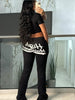 Letter Print Shorts Sleeve Top and Trouser Suit