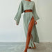 Linen Flare Sleeve Top & Slit Skirt Set