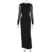 Long dress Socialite Elegant Slim Fit Mesh Sleeves Solid Color