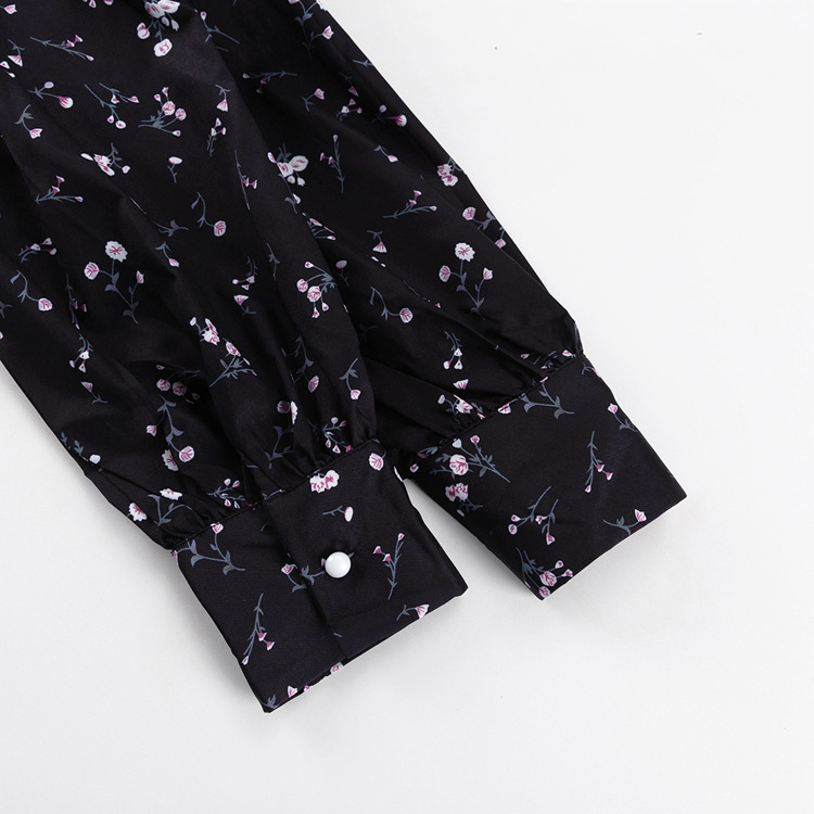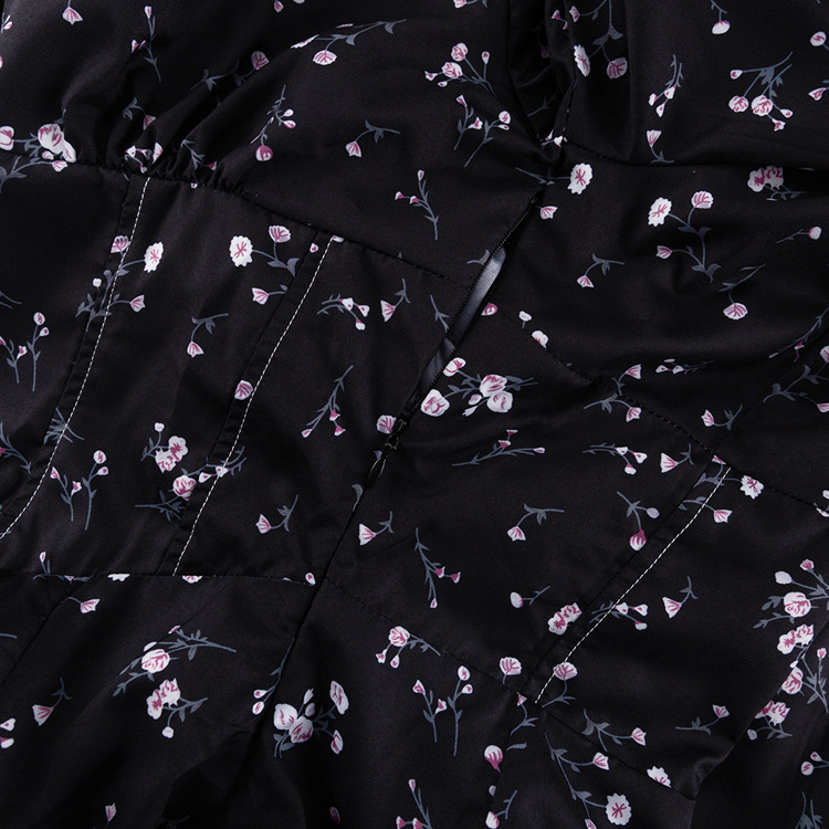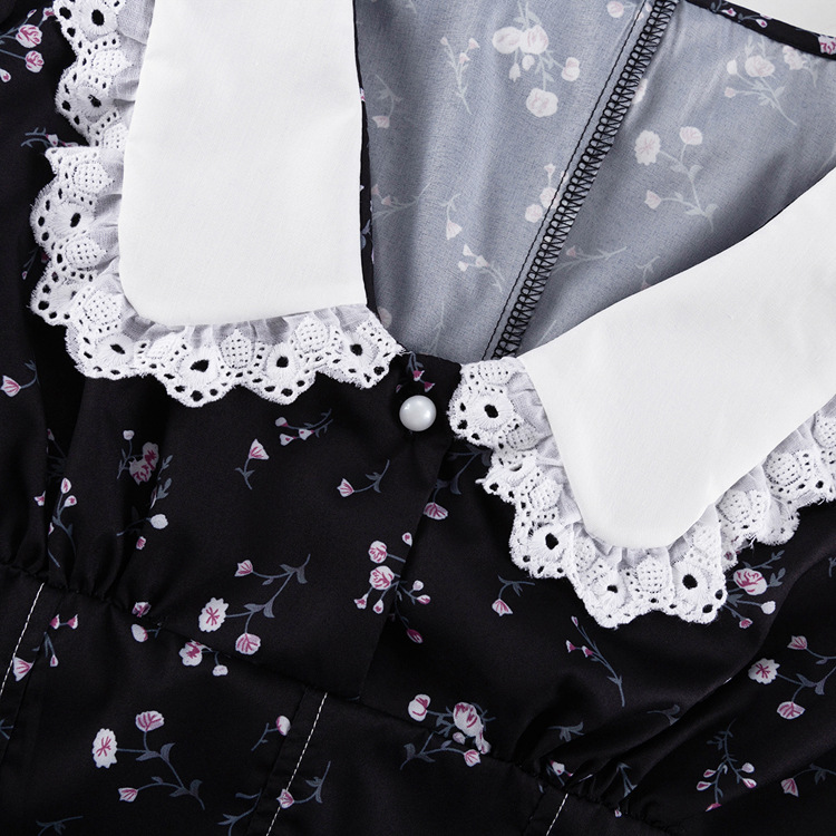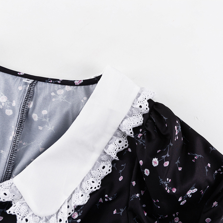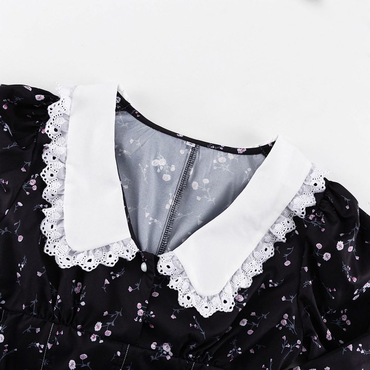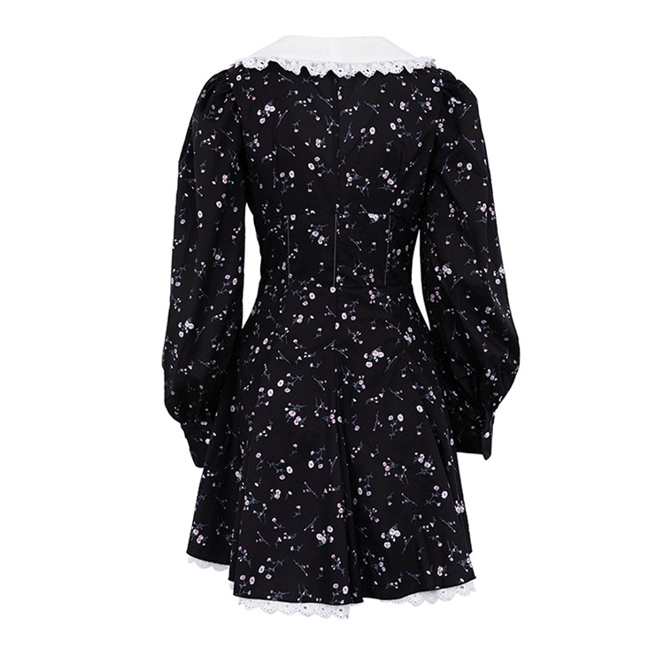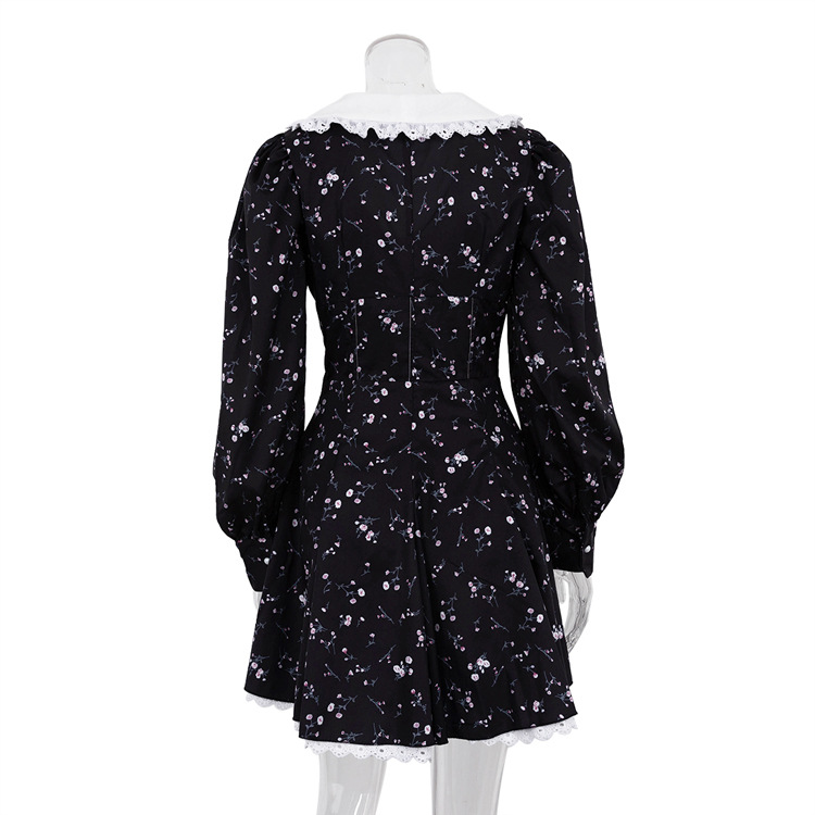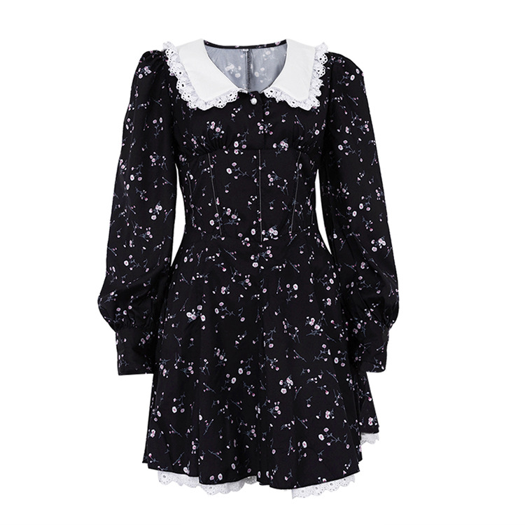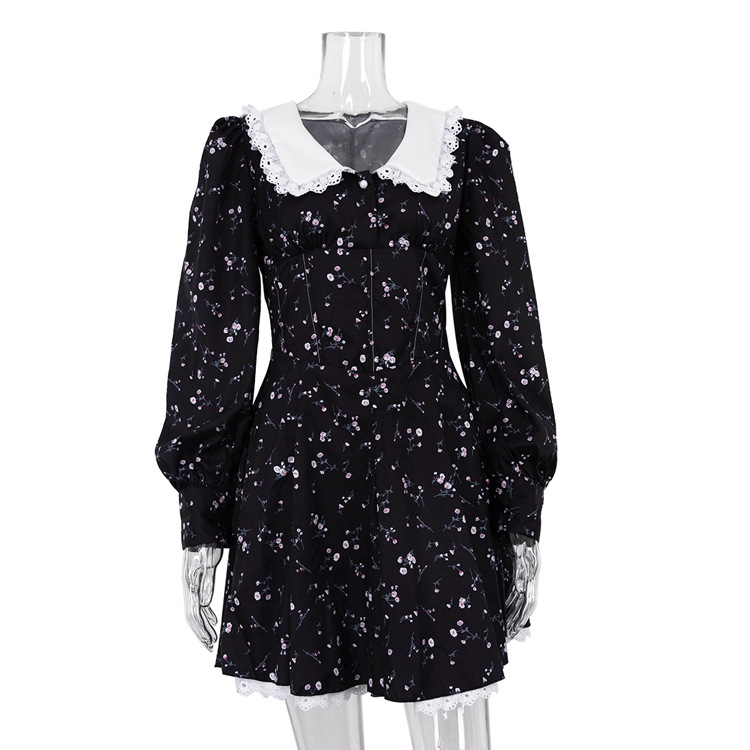 Long Sleeve Floral Short Dress Design Doll Collar Tight Waist A- line Dress