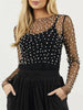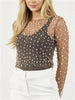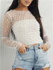 Long Sleeve Mesh Sheer Lace Pearls Top