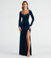 Long Sleeve Square Neck High Slit Thigh Solid Color Velvet Dress Cocktail Ceremony