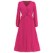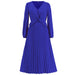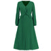 Long Sleeve V Neck Slim Fit Pleated Dress Solid Color Lantern Sleeve Maxi Dress Popular