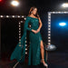 Long Sleeved Elegant Backless Long Sequined Diagonal Collar Cocktail Evening Dress Bridesmaid Dress
