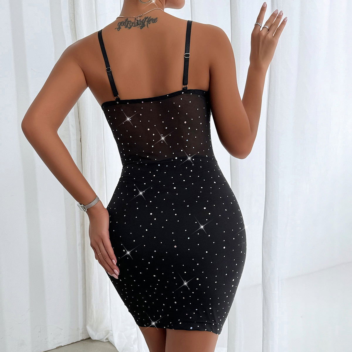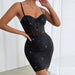 Low Cut See Through Sequin Slip Dress Backless Boning Corset Steel Ring Hip Dress