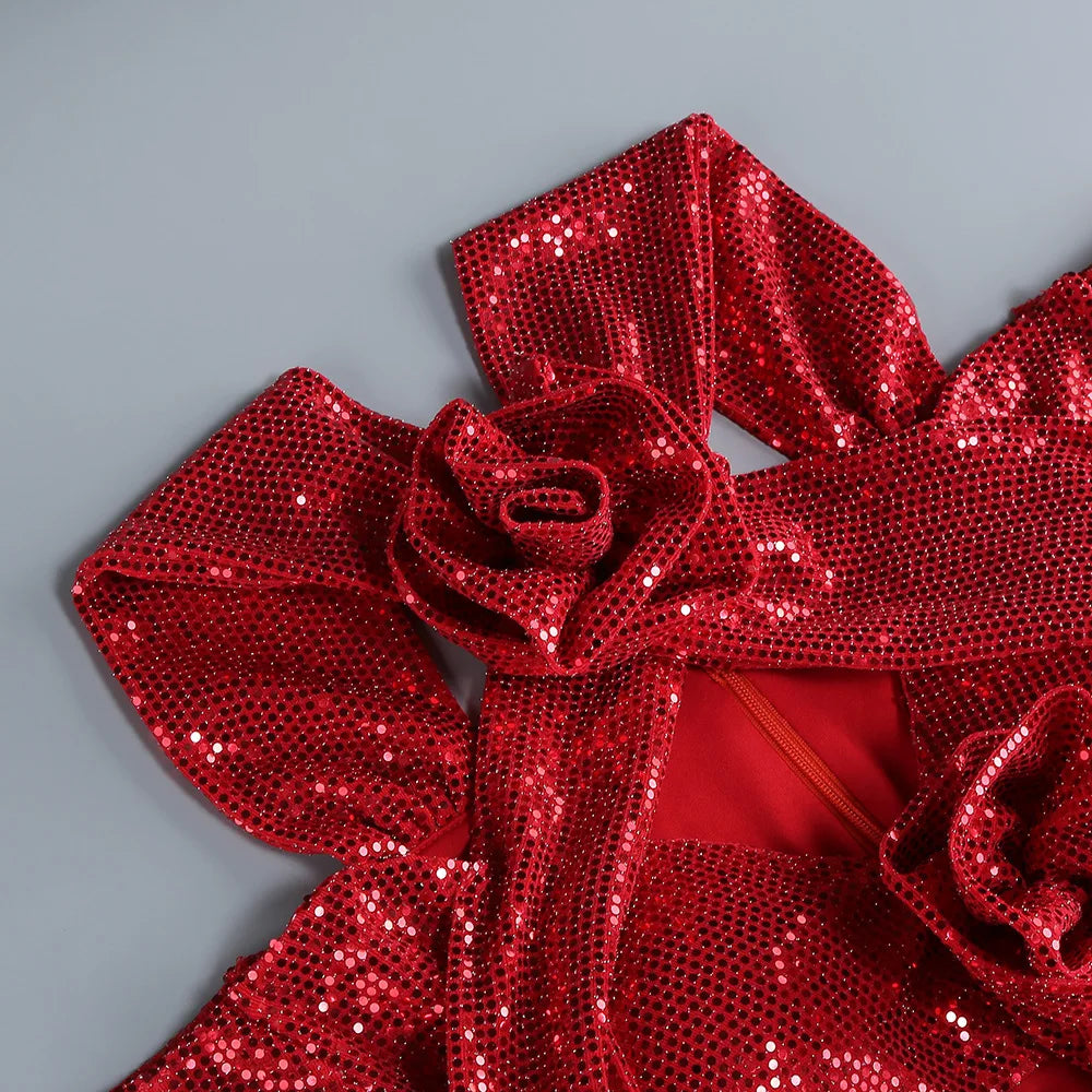 Luxury V-Neck Slit Evening Dress �Floral Hem Party Elegance