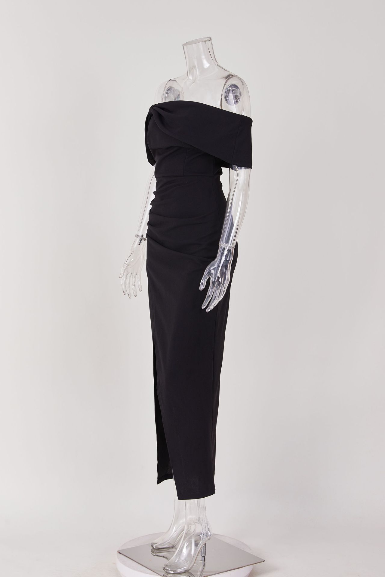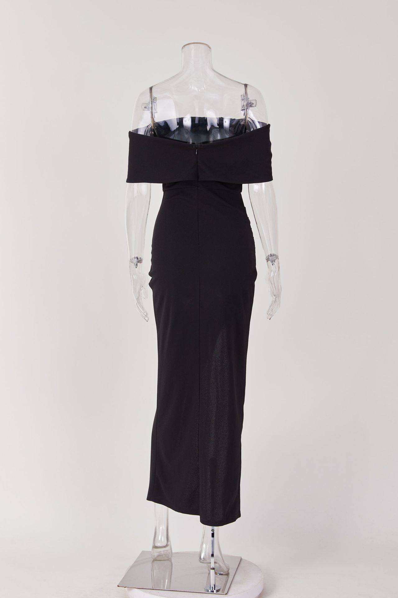 Maxi Dress Solid Color Off Neck Tight Slit Dress