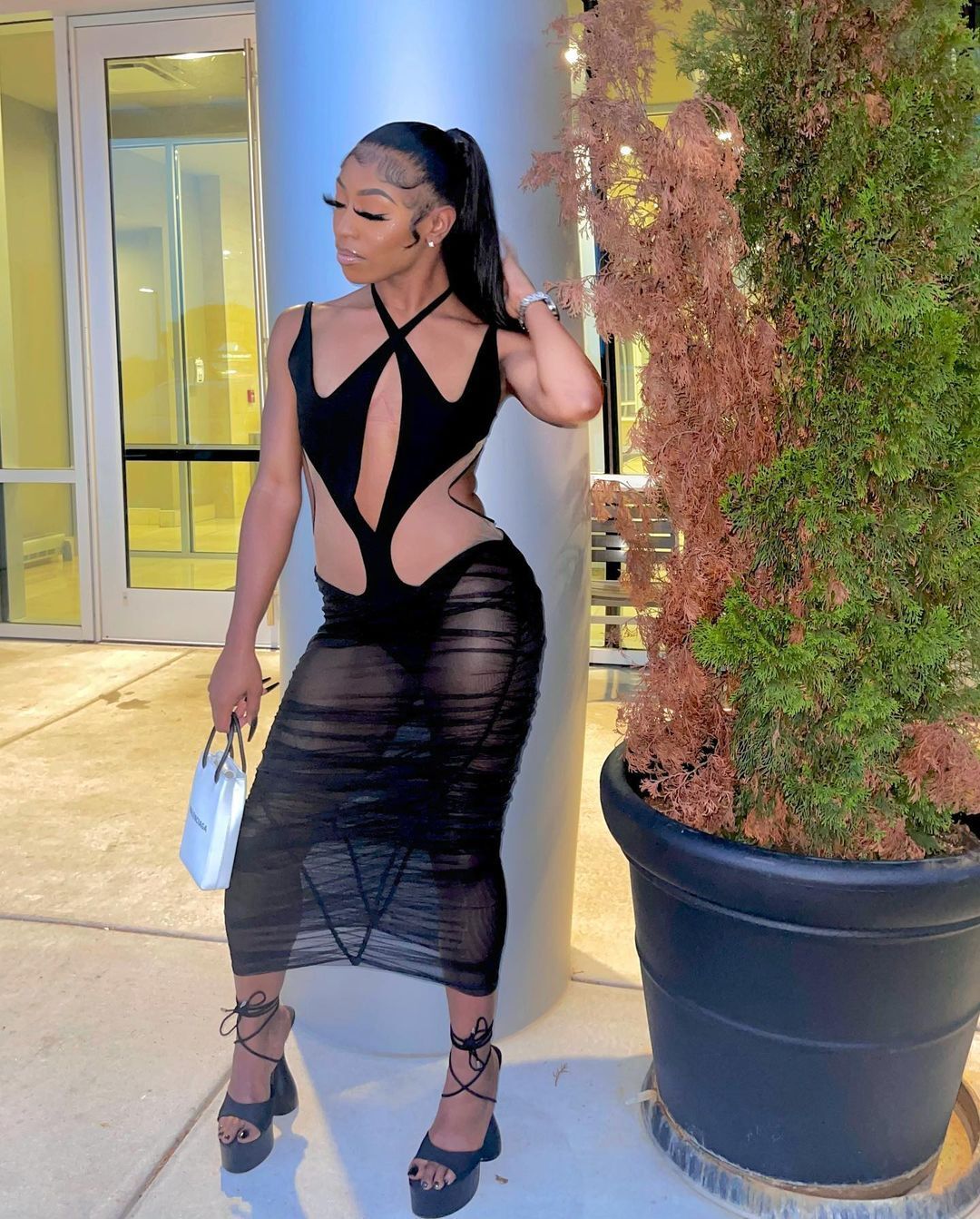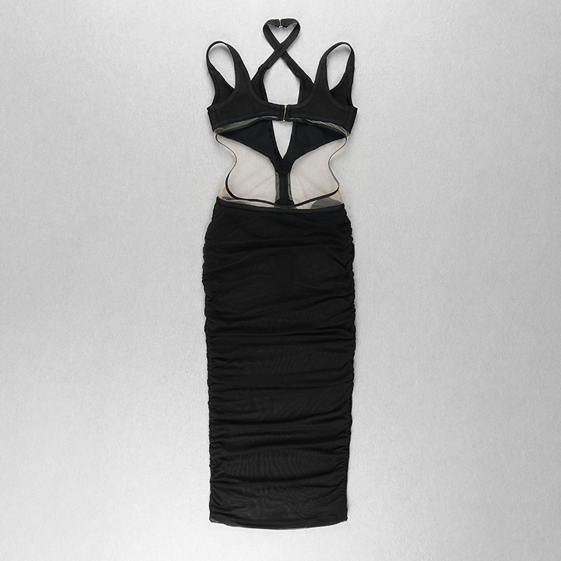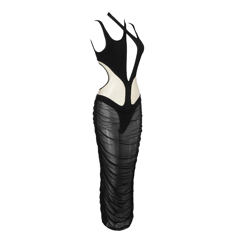 Mesh Hollow Out Cutout Semi-Transparent Slim Fit Maxi Dress Dress Bandage Catwalk
