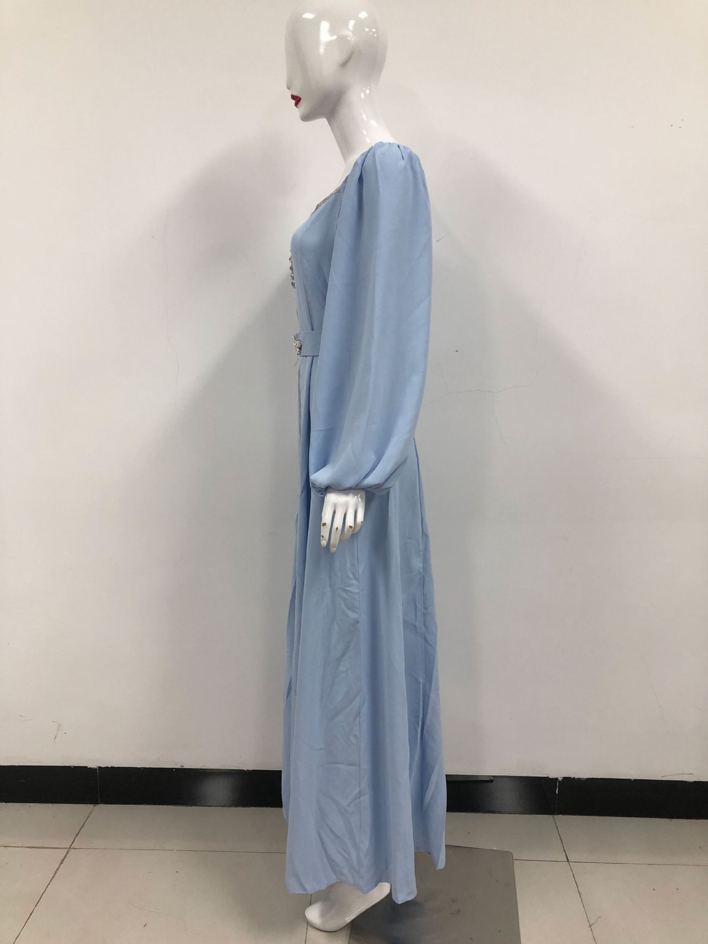 Middle East Muslim Elegant High Waist Rhinestone Dress Robe