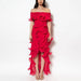 Off Shoulder Dress Elegant Irregular Asymmetric Wooden Ear Design Maxi