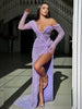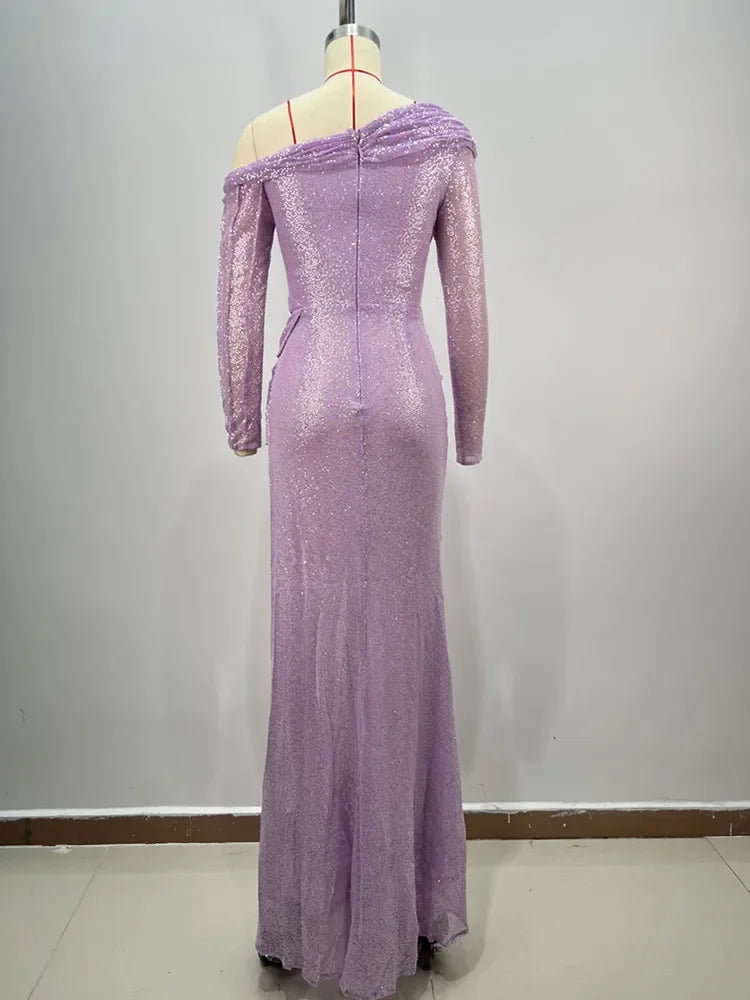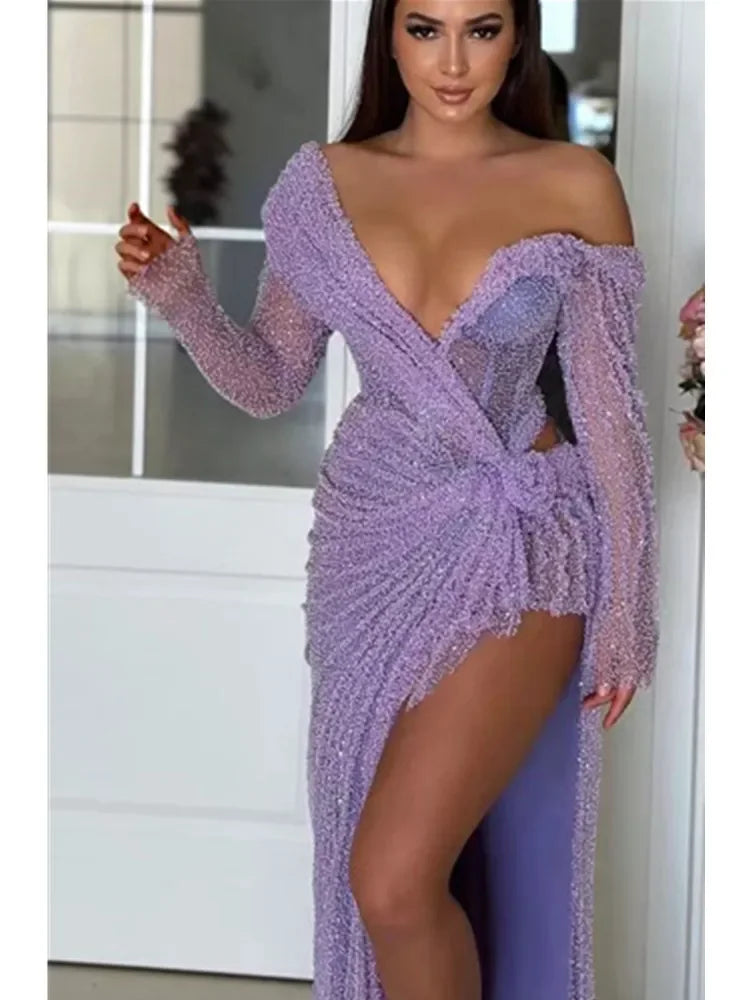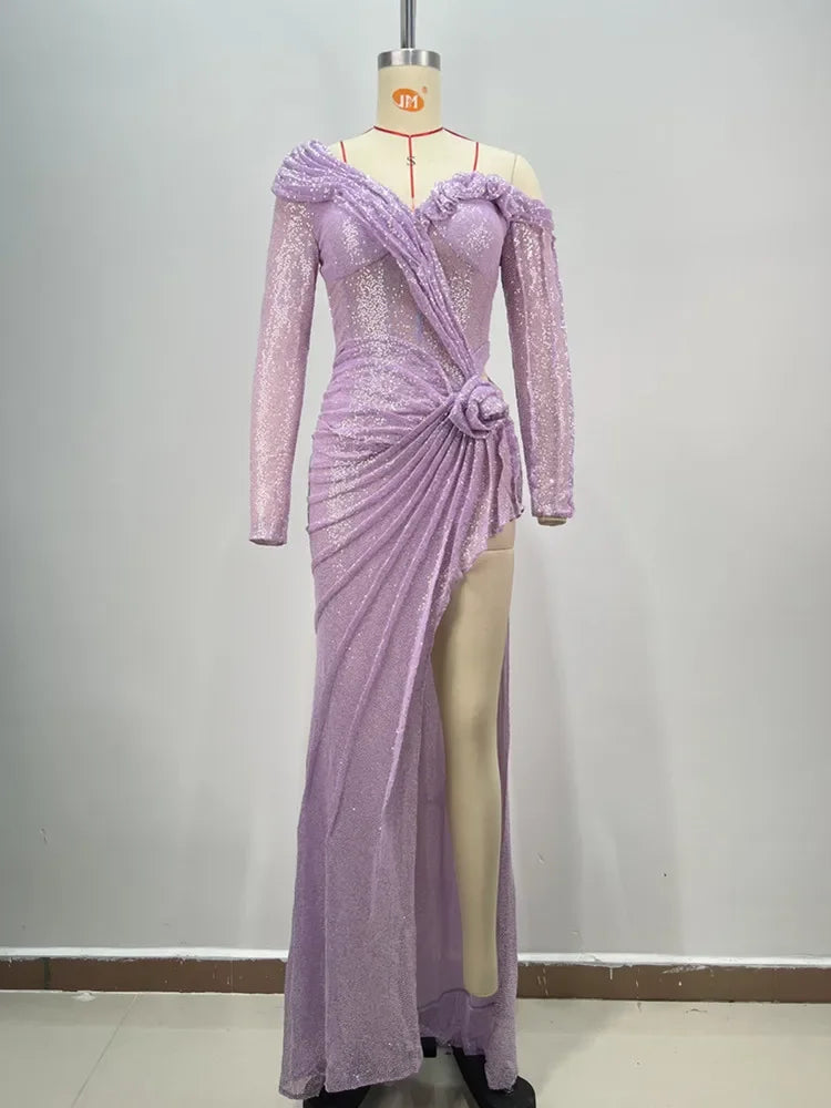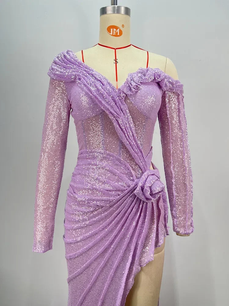 Off-Shoulder Long Sleeve Asymmetric Mesh Dress