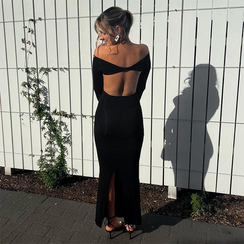 off Shoulder Sleeveless Backless Long Sleeves Dress