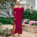 off the Neck Backless Tube Top Maxi Long Sleeve Side Slit Irregular Asymmetric Sheath Dress