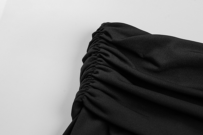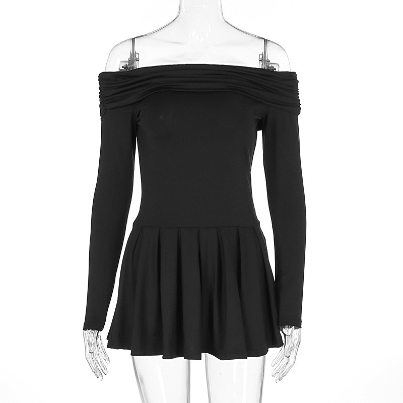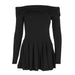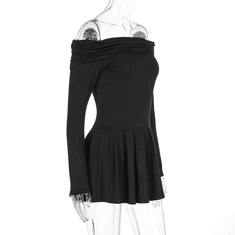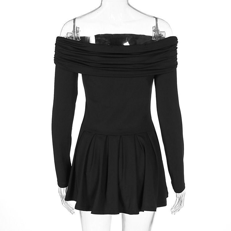 off the Shoulder Slim Fit Long Sleeved Pleated Dress