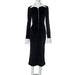 Office Collared Horn Long Sleeve Black White Contrast Color Length Dress