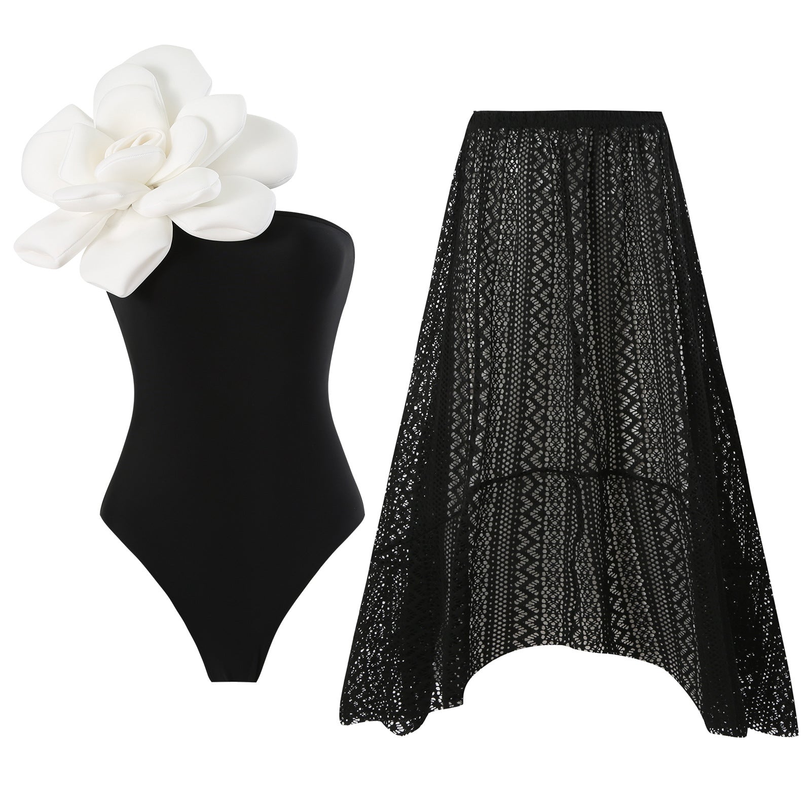 One Piece Swimsuit Skinny Slimming Big Floral Swimsuit Outfit Chiffon Dress