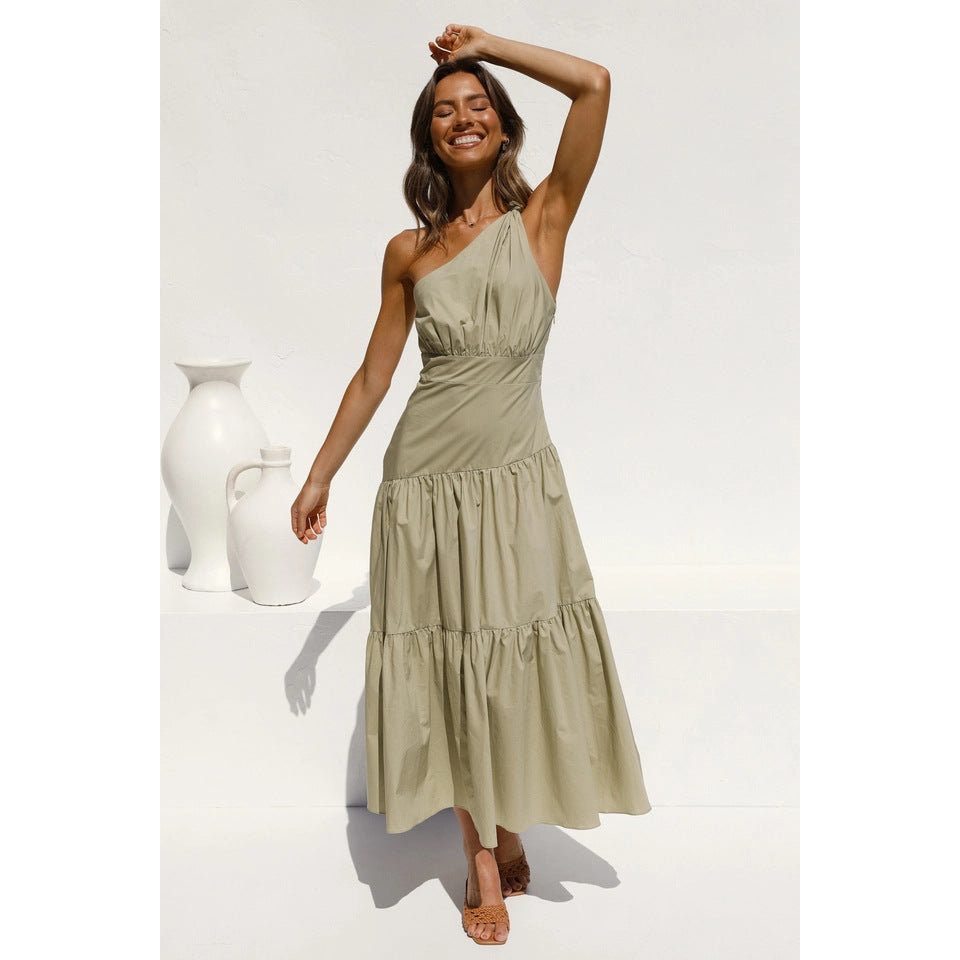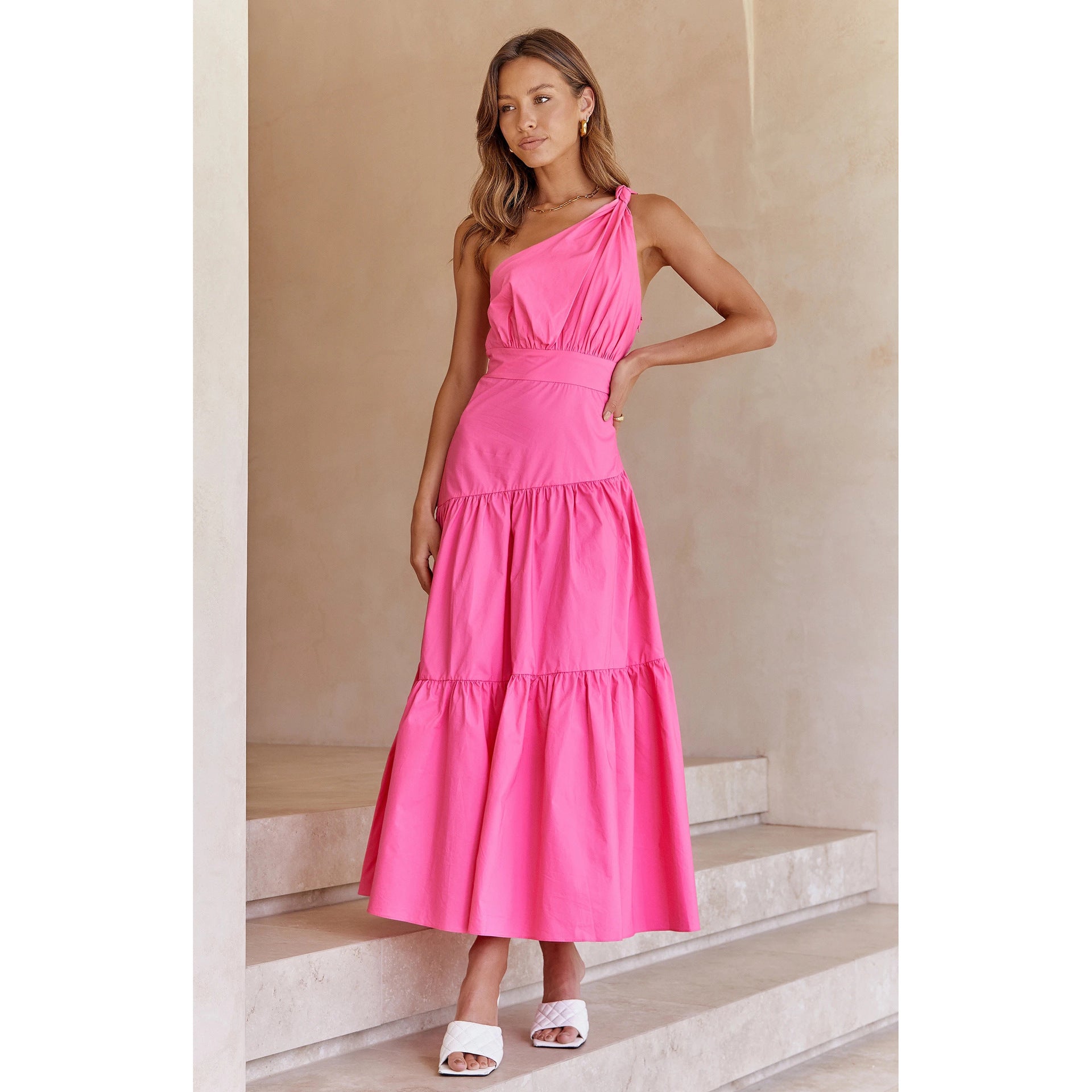 One-Shoulder Knotted Solid Color Fresh Long Sweet Dress