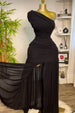 One Shoulder Mesh Solid Maxi Dress