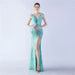 Ostrich Feather Heavy Industry Beads Dinner Exhibition Side Slit High End Evening Dress