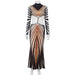 Personalized Striped Printed Ethnic Retro Hollow Out Cutout Backless Dress Performance Dress