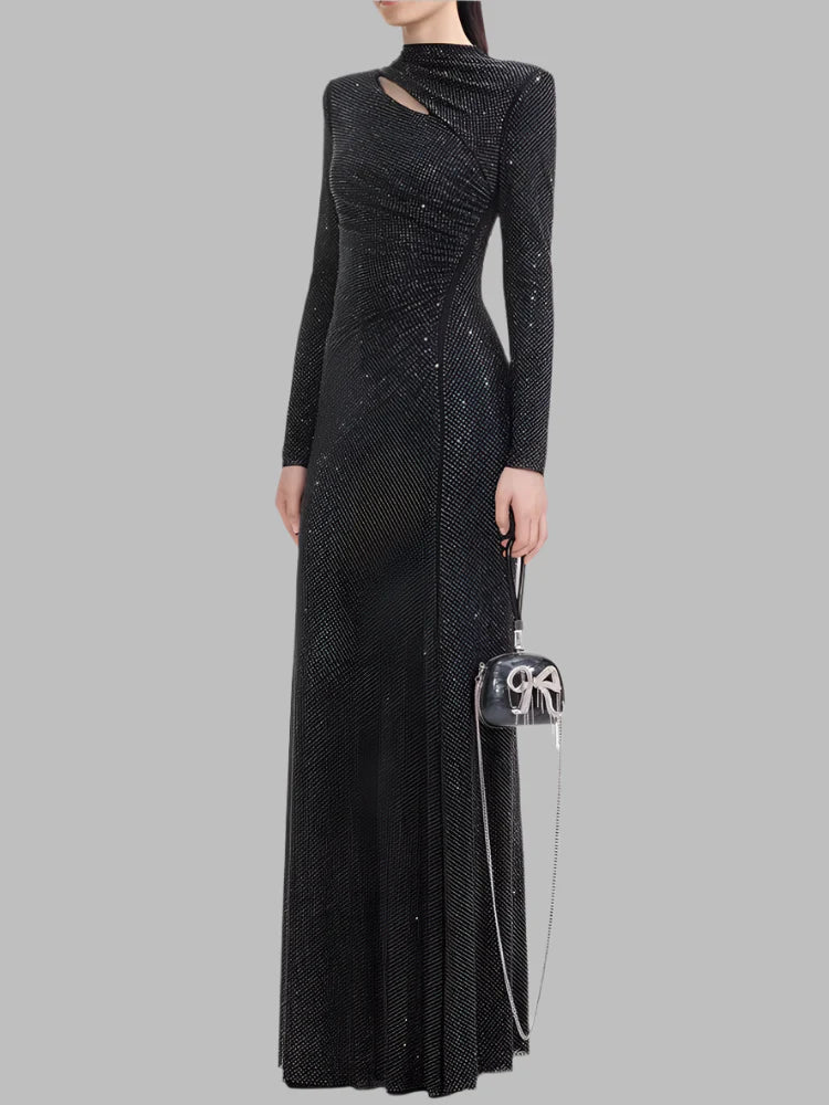 Pleated Diamond Asymmetrical Long Dress