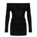 Pleated off the Shoulder Long Sleeve Slim Sheath Short Dress