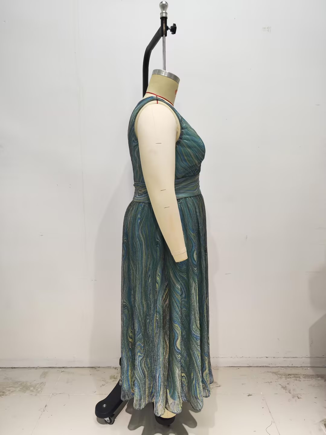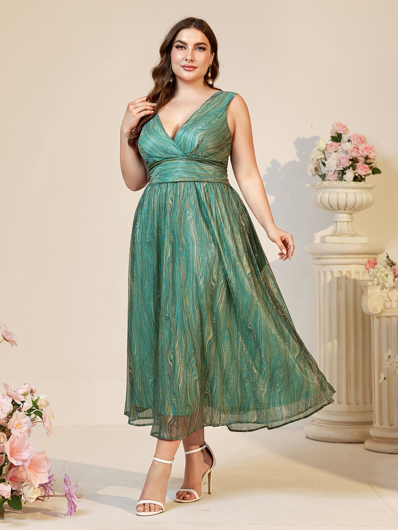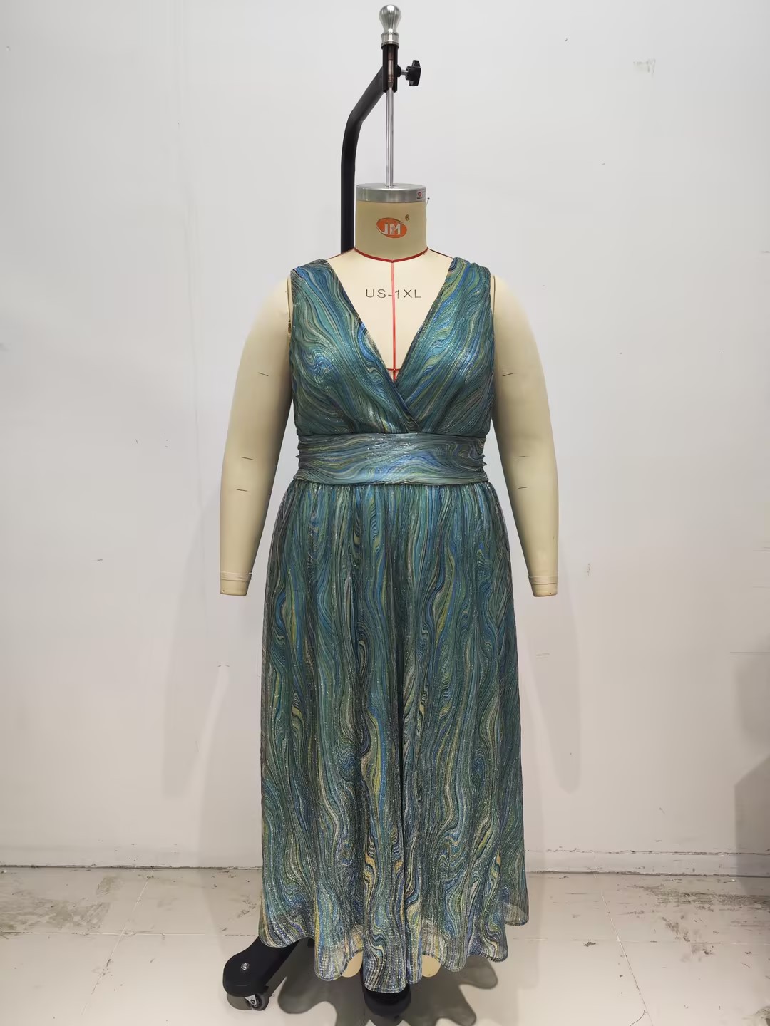 Plus Size Deep V Plunge Girdle Suspender Maxi Dress Elegant Dress
