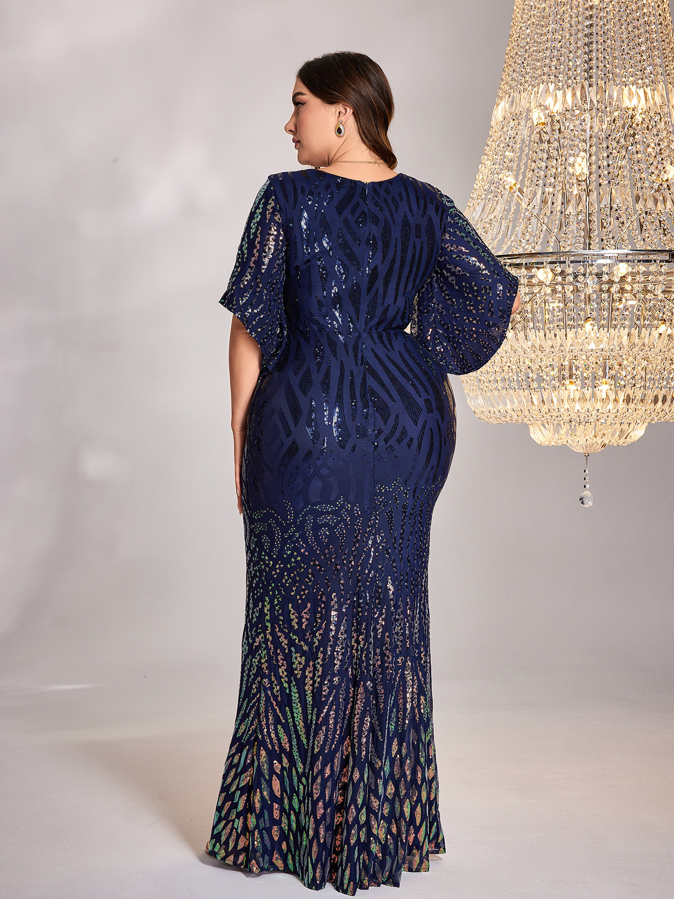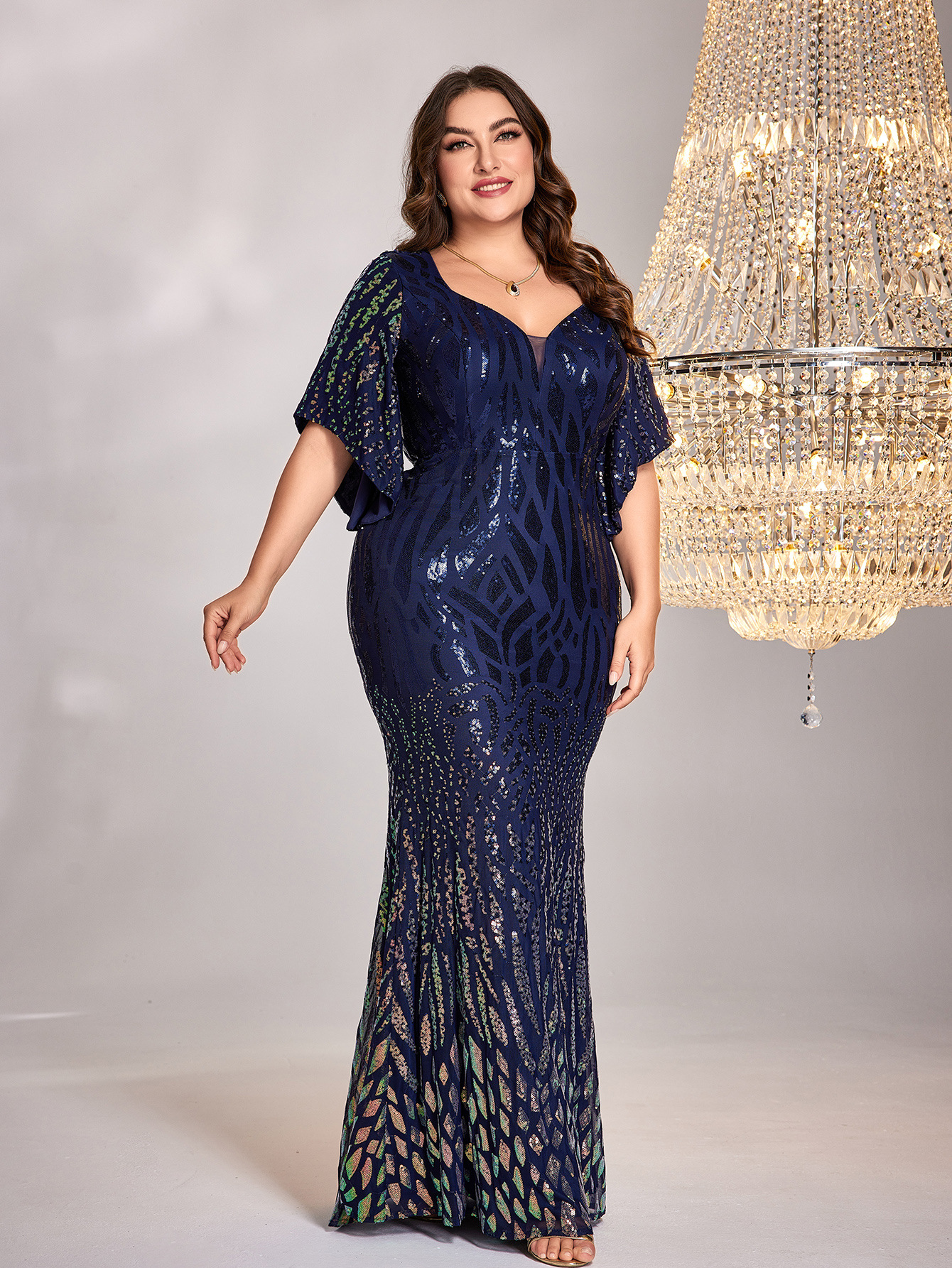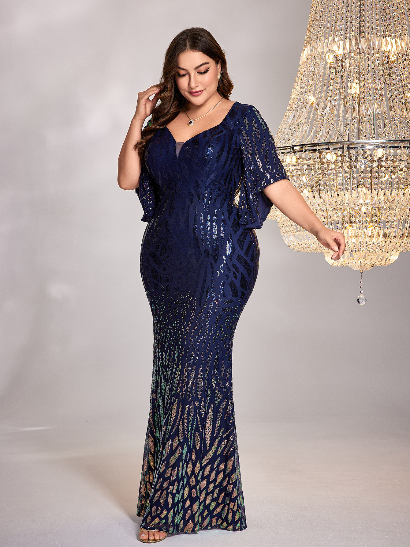 plus Size Long Sleeve Deep V Plunge Slim Fishtail plus Size Evening Dress Cocktail Party