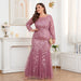 Plus Size Long Sleeve round Neck Full Lining Back Zipper Fishtail Dress Embroidered Evening Dress