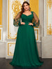 Plus Size Prom Evening Dress Diamond Collar Embroidered Mesh Long Sleeve Backless Fall Dress