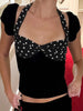 Polka Dot Splicing Black Halter Short Sleeve Crop Top