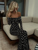 Polka Dots Off Shoulder Long Sleeves Maxi Dress