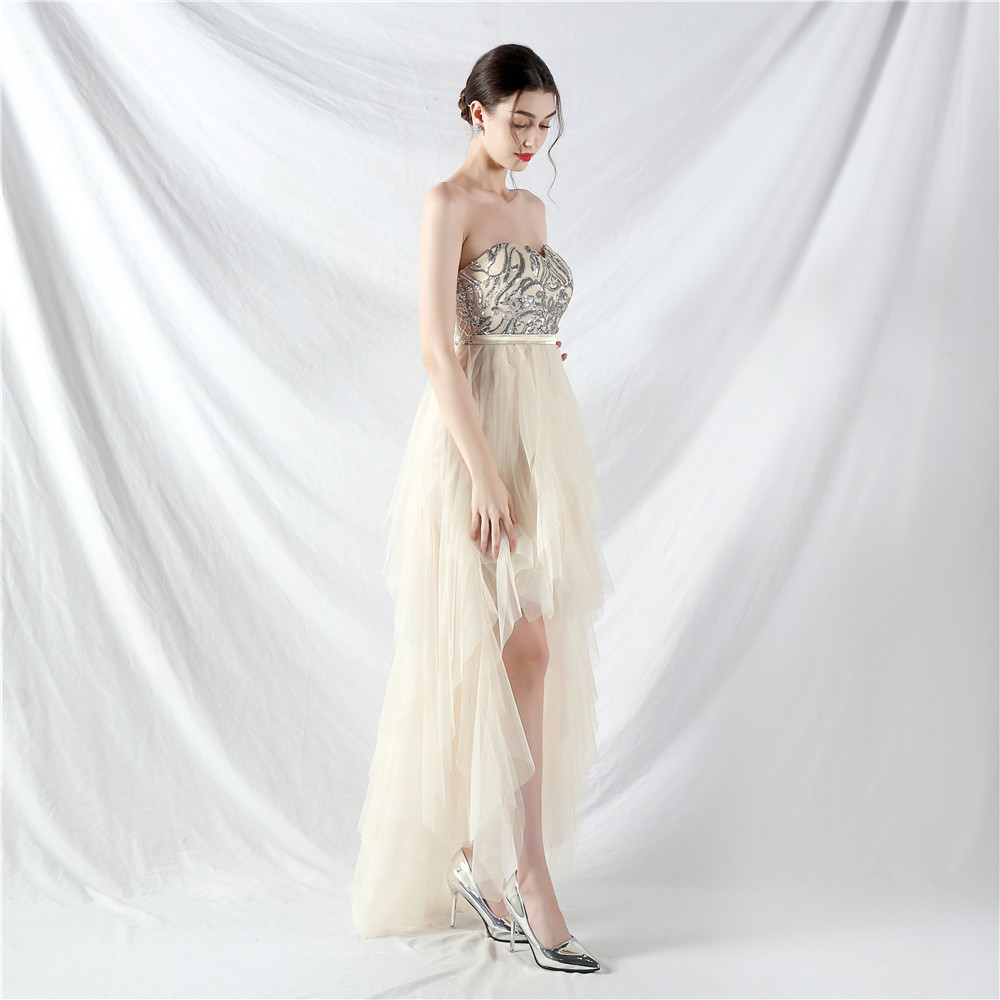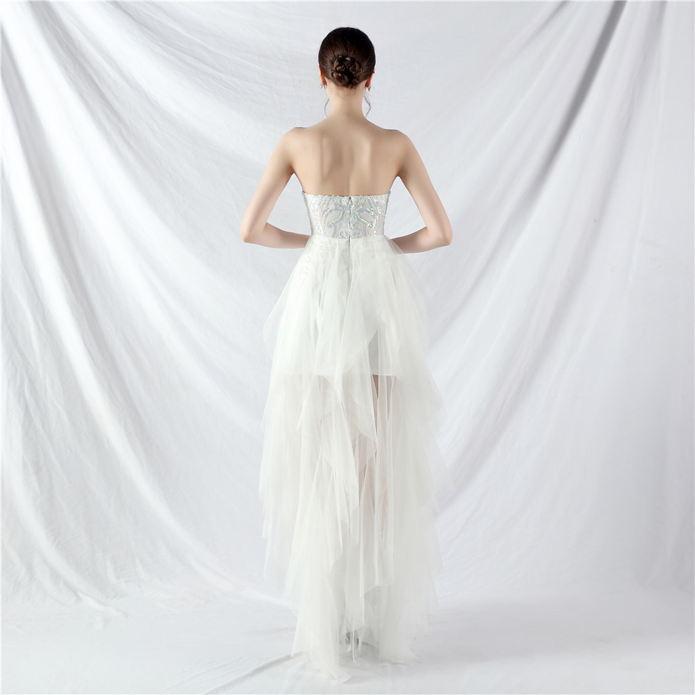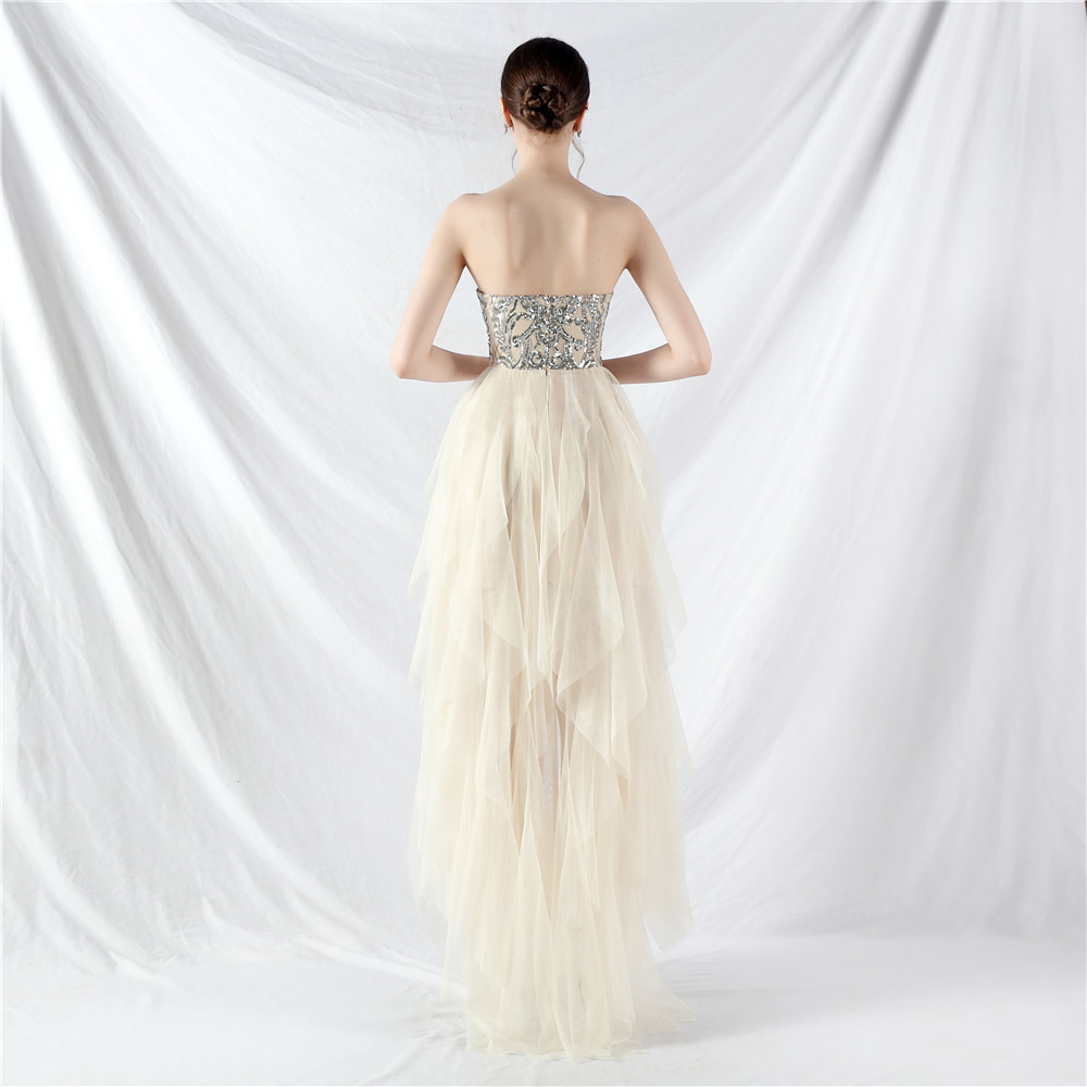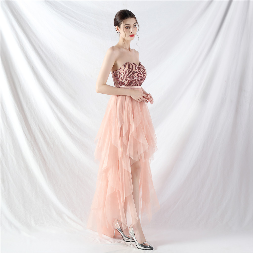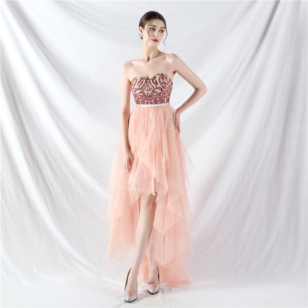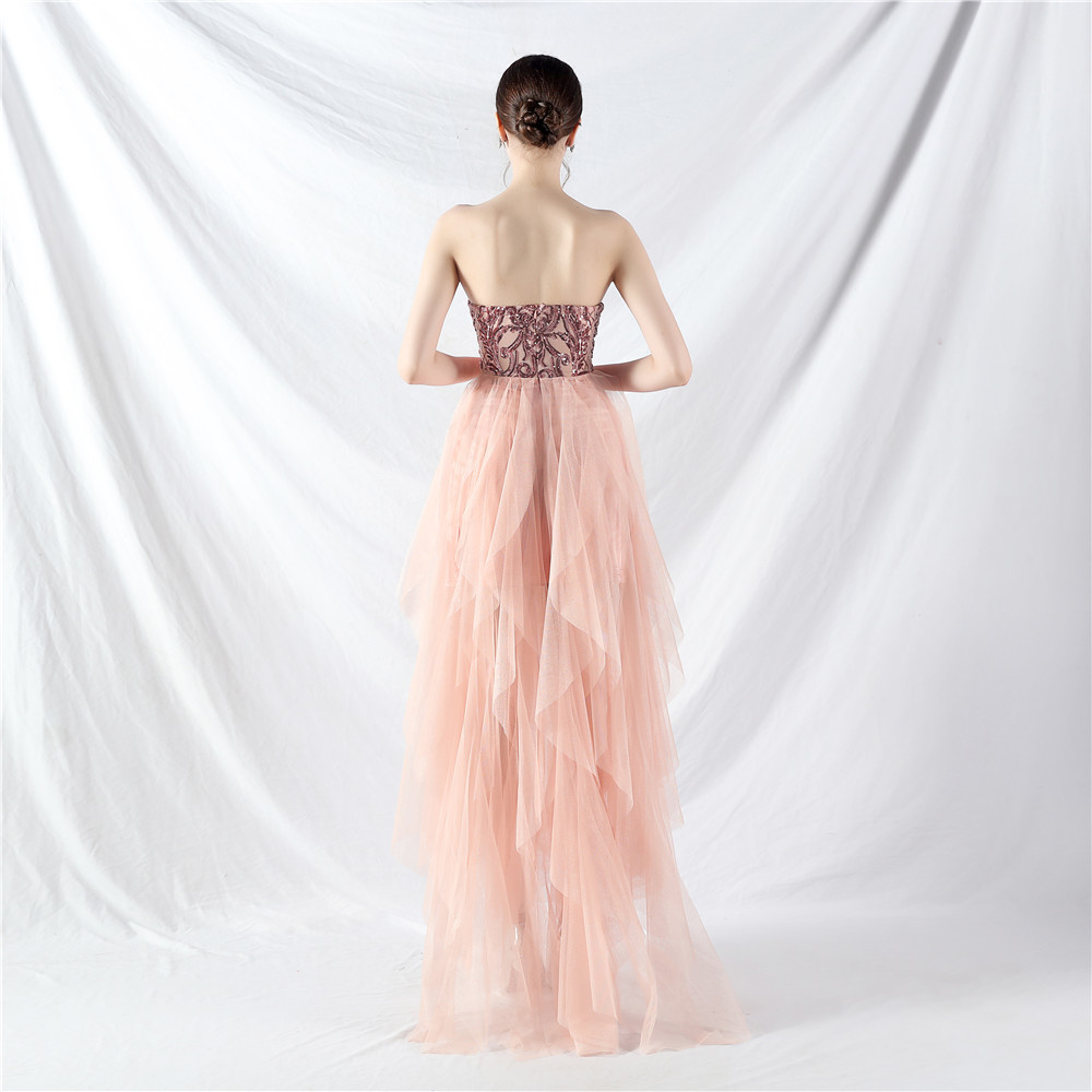 Positioning Floral Sequin Stitching Mesh Tube Top Dress