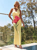Print Yellow Spaghetti Strap Long Dress