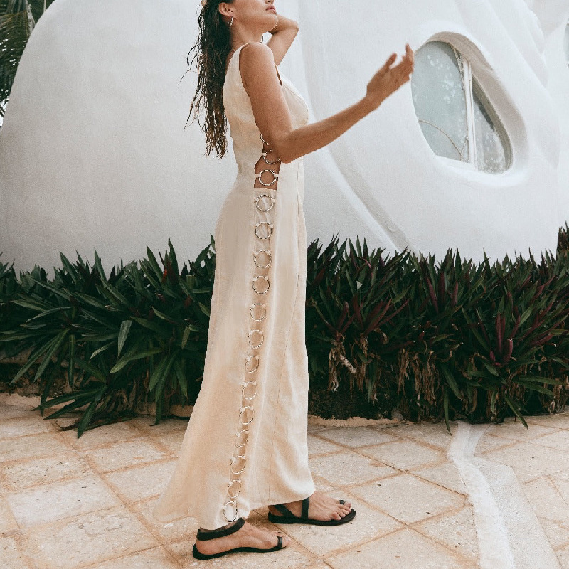 Printed Cotton Linen Sleeveless Decorative Iron Hoop