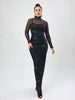 Printed Mesh See Through Dress Turtleneck Long Sleeve Spaghetti Strap Two Piece Maxi Dress