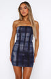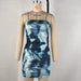 Printed Off Neck Tube Top Cinched Waist Sheath Dress Club Wear