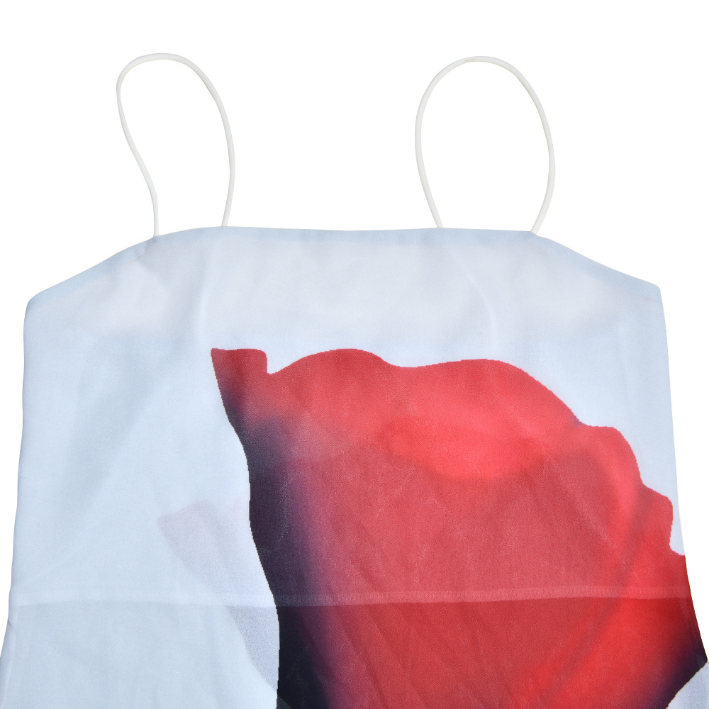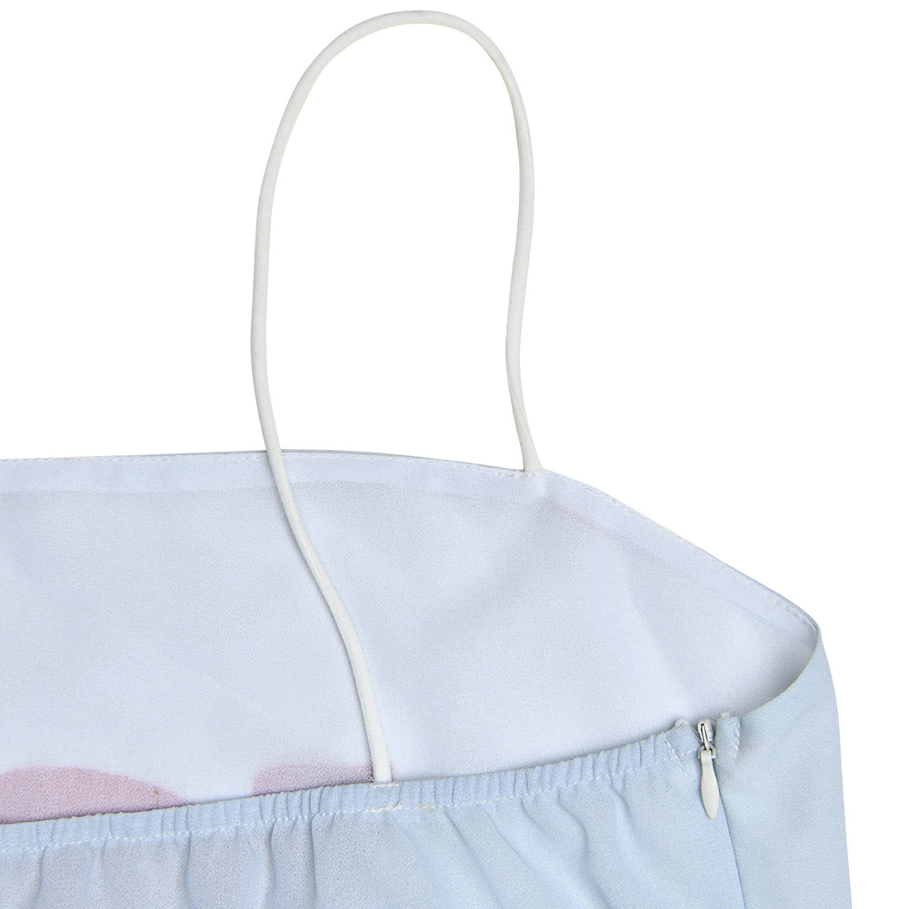 Printed See through Strap Dress off Neck Waist Maxi Dress