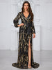 Prom Evening Dress Sequined Lace up Random Printed V neck Long Sleeve Light Luxury Party Evening Dress