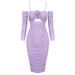 Purple Long Sleeve Dress Slim One Neck Sleeve Floral Tulle Dress