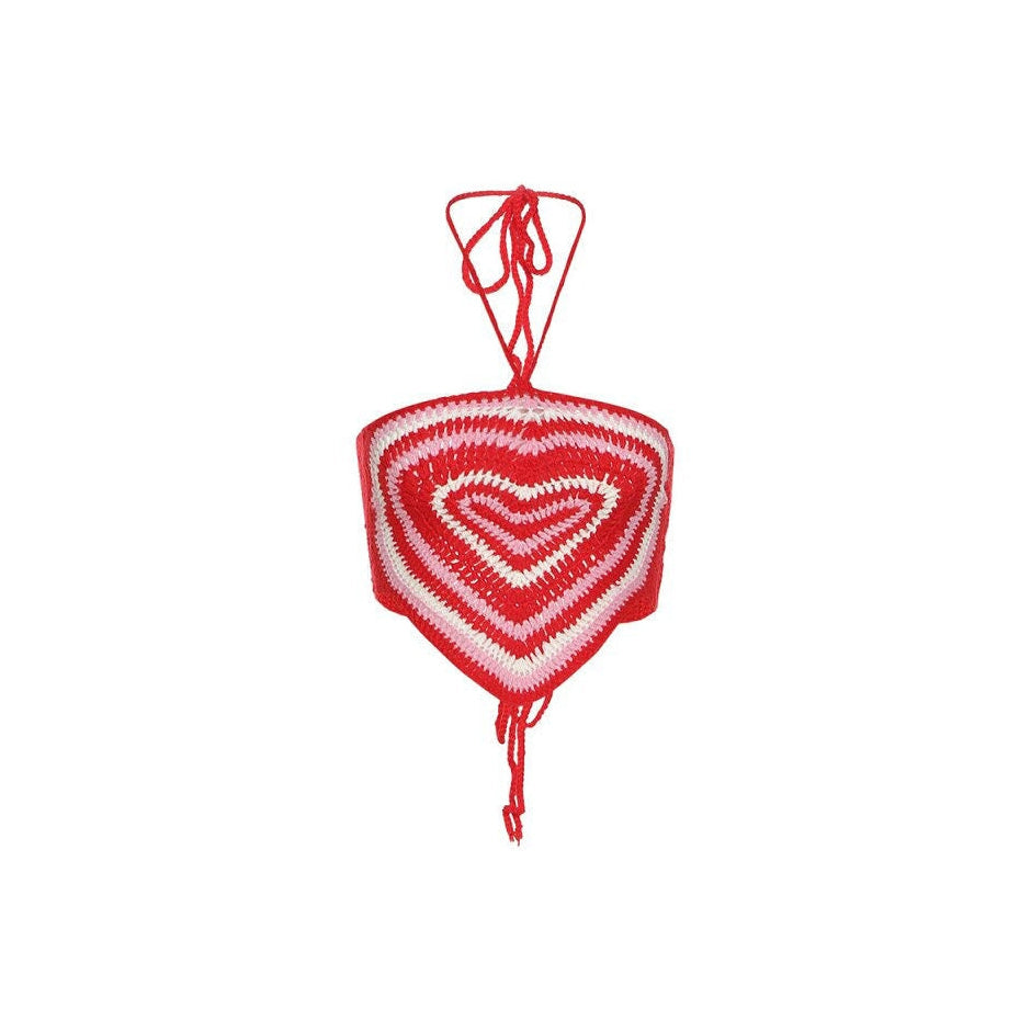 ���Heart Knit Crop Top has a knit construction with a wavy heart print. scarf design. and adjustable cami straps
