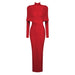 Red Bandage Turtle Neck Cross Design Long Dress